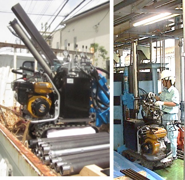 回転と打撃をエンジン回転数とバルブで調整し、地盤とサンプラに最適な条件を与えることができ、効率よいボーリング作業が可能です。