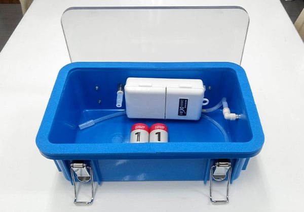 丈夫な既製品のコンテナを加工製造することで、捕集箱の耐久性と低コスト化を実現