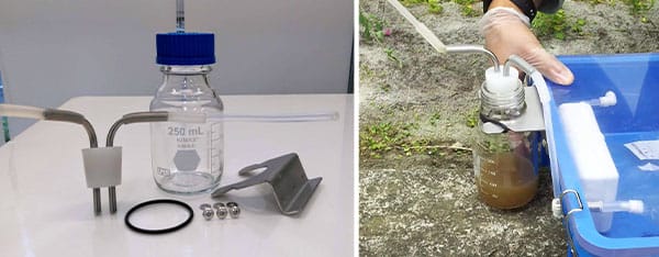 側面の採取口でガスは吸えるが、洗浄が困難↓