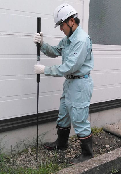 先端部にシューを装着したステンレス製の保護管と、セットの心金で打込み可能に