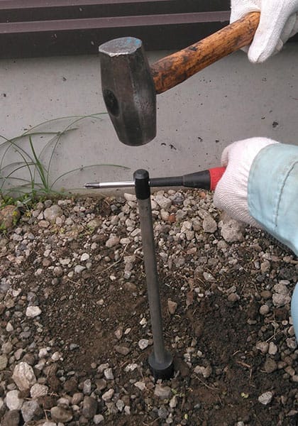 何回ボーリングバーを打ち込んでも孔が崩れてしまい、保護管を挿入できない↓