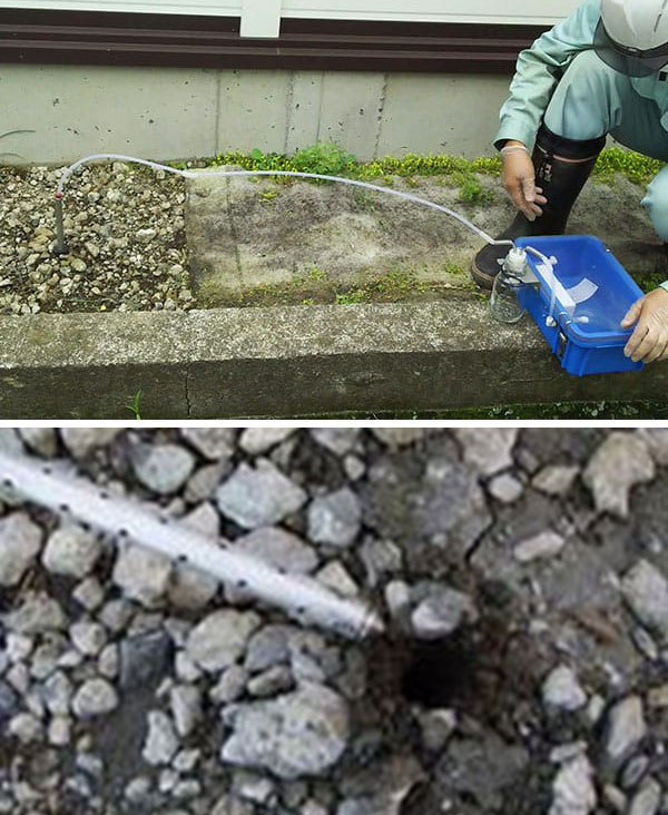 保護管底面の採取口に泥が詰まってガスが吸えない↓