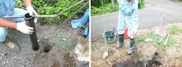 - わずか2〜3mの観測井戸なのに崩壊性が 高くて井戸管を挿入できない