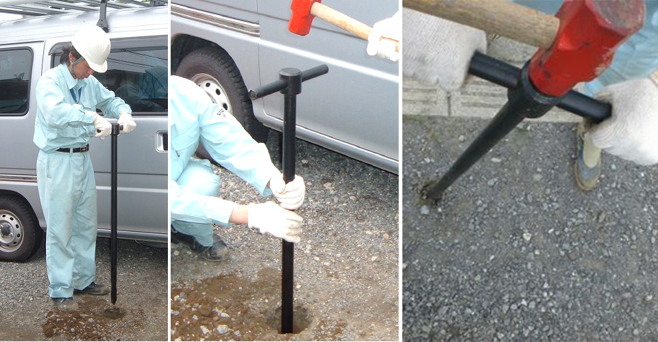 - ガラがじゃまして、どうにも土壌試料採取ができない