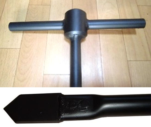 先端は焼入れ鋼を溶接してあります。磨耗が進んだらグラインダで研磨してください。