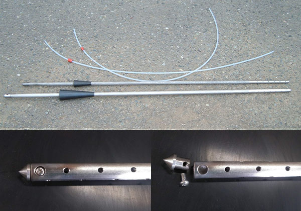 先端部にシューを装着したステンレス製の保護管と、セットの心金で打込み可能に