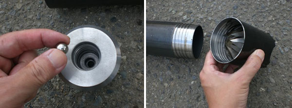 コアチューブに逆止弁ボールとバスケットを装着し、緩い地層でも試料を採取します。